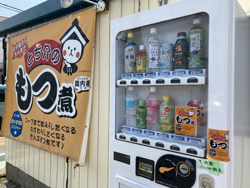 24時間いつでも買えるとち介のもつ煮 自動販売機♪ご飯のお供にも!お酒のおつまみにも!さっぱりショウガの合わせ味噌味。居酒屋はコロナ対策済の完全予約制 プライベート空間としてご利用頂けます!ご注文・ご予約はFAX、メールにて。