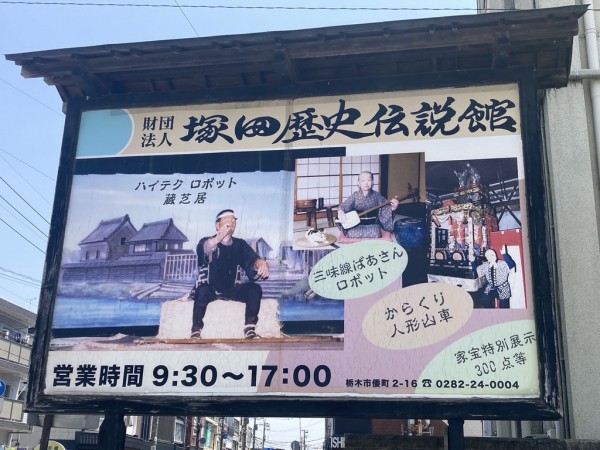 塚田家は江戸時代後期の弘化年間より木材回漕問屋を営んできました。当時は木材を筏に組んで巴波川を経由して江戸深川の木場まで、三日三晩かかって運んでいました。栃木市の母なる川「巴波川」の川面に影を落として並ぶ八つの白壁土蔵は群雄する鯉とともに「鯉のいる街、蔵の街」の代表的な風景となっております。館内には、歴代が集積した家宝の展示物や、お囃子付きからくり人形山車(手力男命)の他、古代銘木の逸品を解説付きで展示しております。